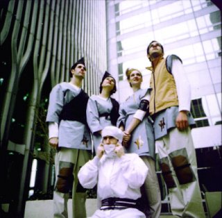 Dismayed by their polite reception, the Yes Men felt that their next gesture should be more extreme. At a textile conference in Finland, also in 2000, Andy ripped off his business attire mid-presentatoin to reveal a gold bodysuit with a giant phallus attached, which housed instruments used for monitoring and controlling an offshore labor force. The suit was presented along with a video by Patrick Lichty that heightened its absurdity–but still failed to garner outrage or incredulity from those in attendance.